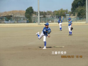 早速Cクラスチーム(U3)は懇意にしていただいているBJさんと桜森スポーツ広場で9時~練習試合と相成りました。どうなることやらと心配でしたが、なんとなんと何とか試合らしく安堵しました。新チームの初めての試合、礼儀作法・コーチャーの仕事、ボールボーイの役割、バットボーイのお仕事、守備位置の確認、走塁の実際・・・・いろいろ学ぶことが多く大変! 6年生が指導役で頑張ってくれました。皆緊張の中にもきびきびと、時にはボーっと、でも楽しそうに頑張ってプレイしていました。今後に大いに期待できそうです。指導役の6年生ありがとう!多くの熱心な保護者の応援ありがとうございました。