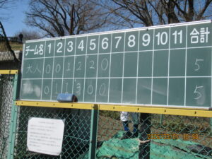 朝9時からつきみ野野球場で卒団生+4・5年生 対 指導者・卒団生の保護者+1・2・3年生で送別紅白戦を行いました。代表・顧問も投手で登壇、真剣な中にも和気あいあいの試合、仲良く5:5の引き分けとなりました。球場で第一回目の卒団生人の輪トンネルで送り出し。