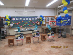 ホームタウンの中林小に行き、昼食ののち、工作室で第二部お別れ会(卒団式)を実施。きれいに装飾され卒団ムード満杯。